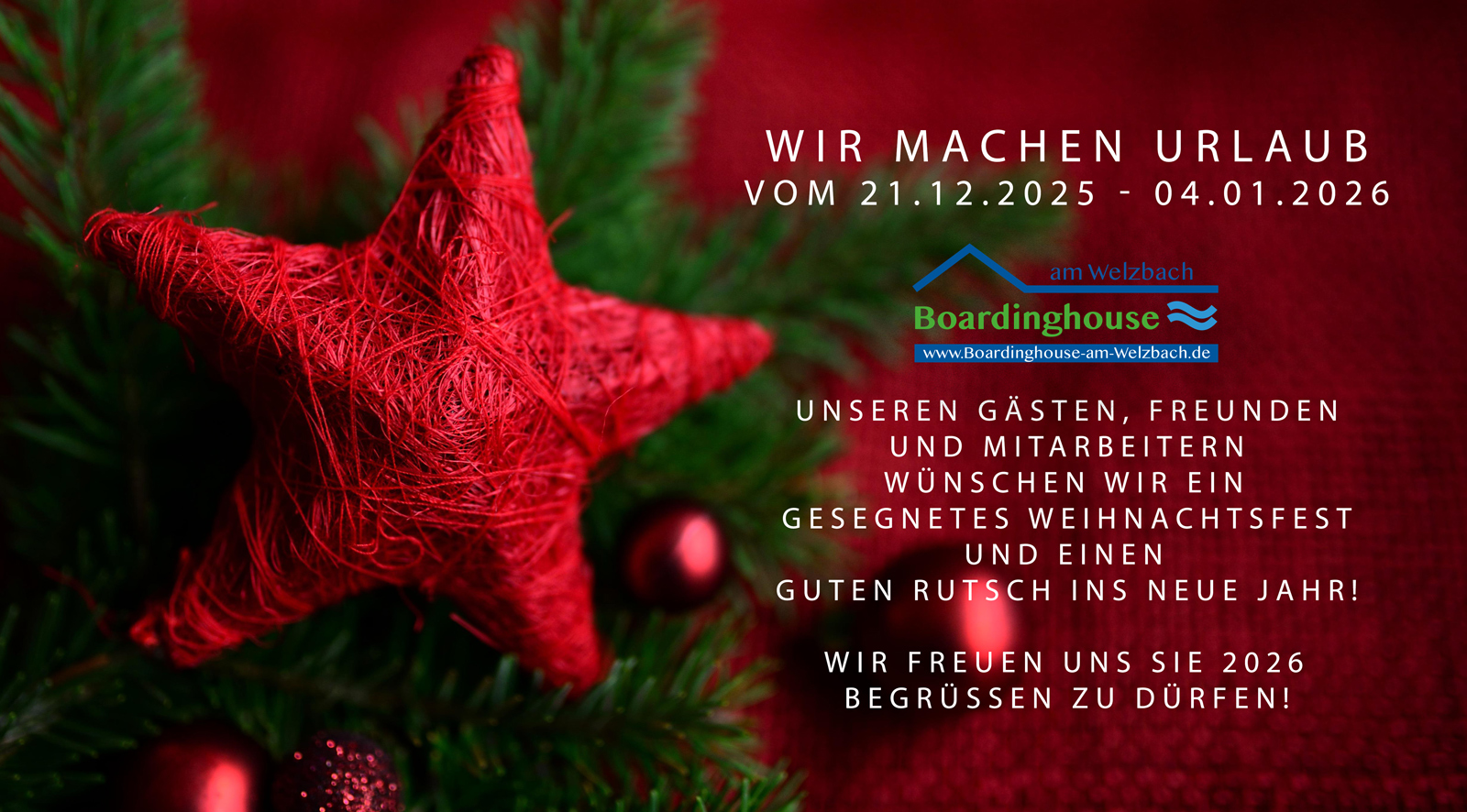 Das „Boardinghouse am Welzbach“ ist ein familiengeführtes Haus und versprüht einen gemütlichen und einladenden Charme. Lassen Sie sich ein individuelles Angebot unterbreiten.
